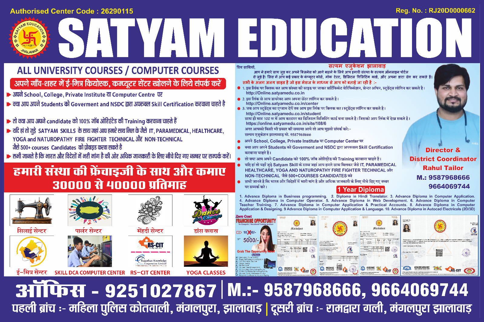 As the Founder & Academic Head of Satyam Education, Mr. Rahul Tailor has dedicated his efforts to creating a transparent, quality-driven education system in Jhalawar. Under his guidance, the institute ensures that every student gets the right direction for a successful career.